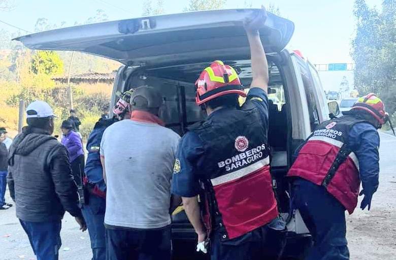 En una vía de la comunidad Ñamarín, del cantón Saraguro, de la provincia de Loja, el martes 3 de septiembre de 2024, los conductores de dos motocicletas se involucraron en un accidente de tránsito; al lugar acudieron los ‘casacas rojas’ del Cuerpo de Bomberos de esa jurisdicción para asistir a los motociclistas lesionados y tras estabilizarlos llevarlos a una casa de salud.