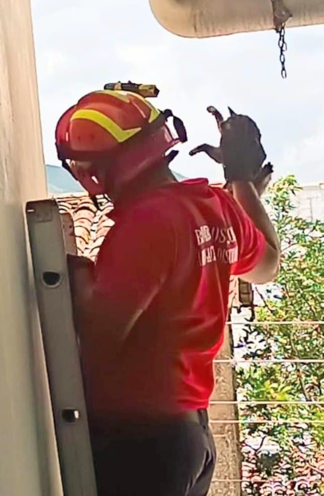 El rescate de un minino, la tarde del miércoles 28 de febrero de 2024, del techo de la escuela ‘13 de Abril’ lo ejecutaron los ‘casacas rojas’ del Cuerpo de Bomberos de Loja, de la parroquia Vilcabamba, del cantón Loja.